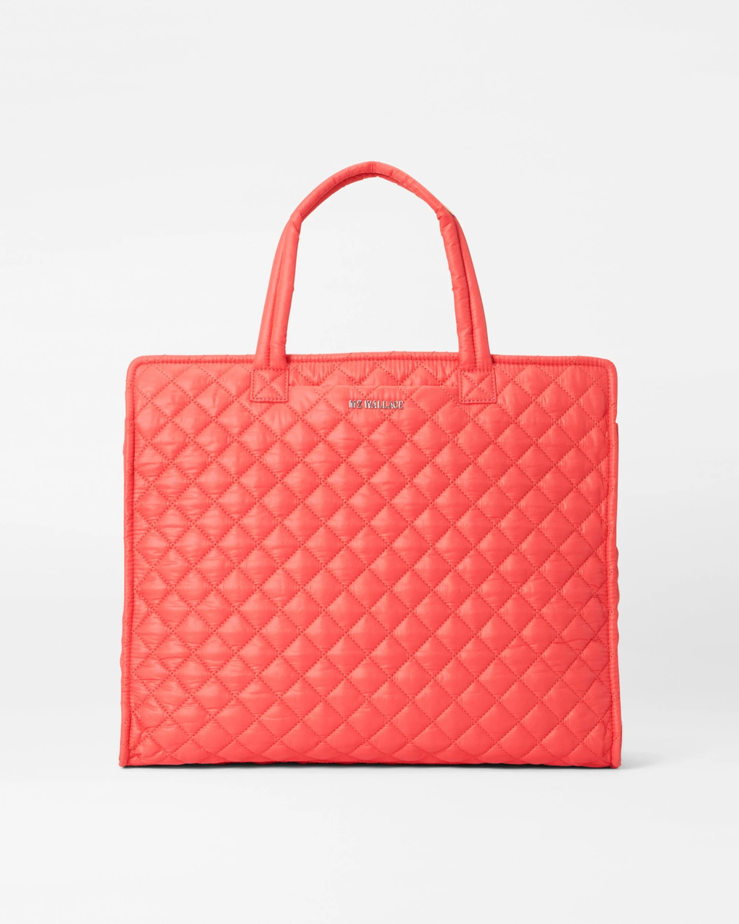 The sleek, structured Large Box Tote carryall has four exterior pockets (including two slip pockets), our signature six interior pockets, a large zippered central compartment, a detachable, adjustable crossbody strap and a 100% recycled nylon fabrication.