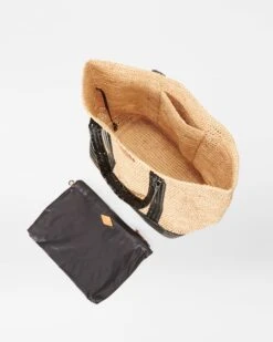 Raffia/Black Lacquer Large Raffia Tote